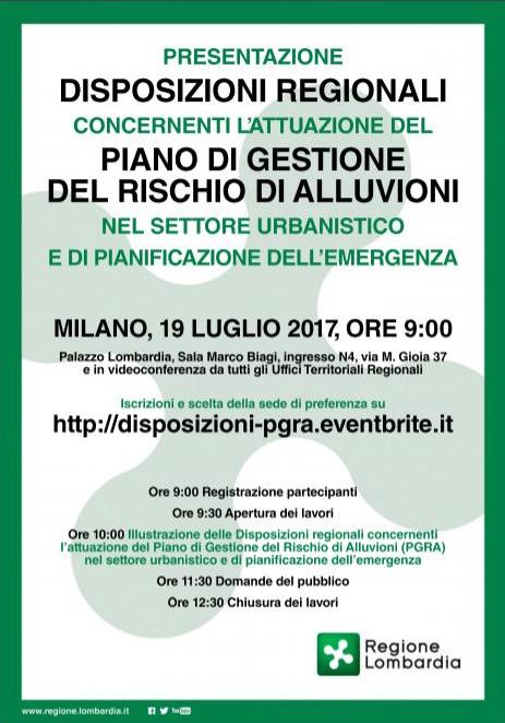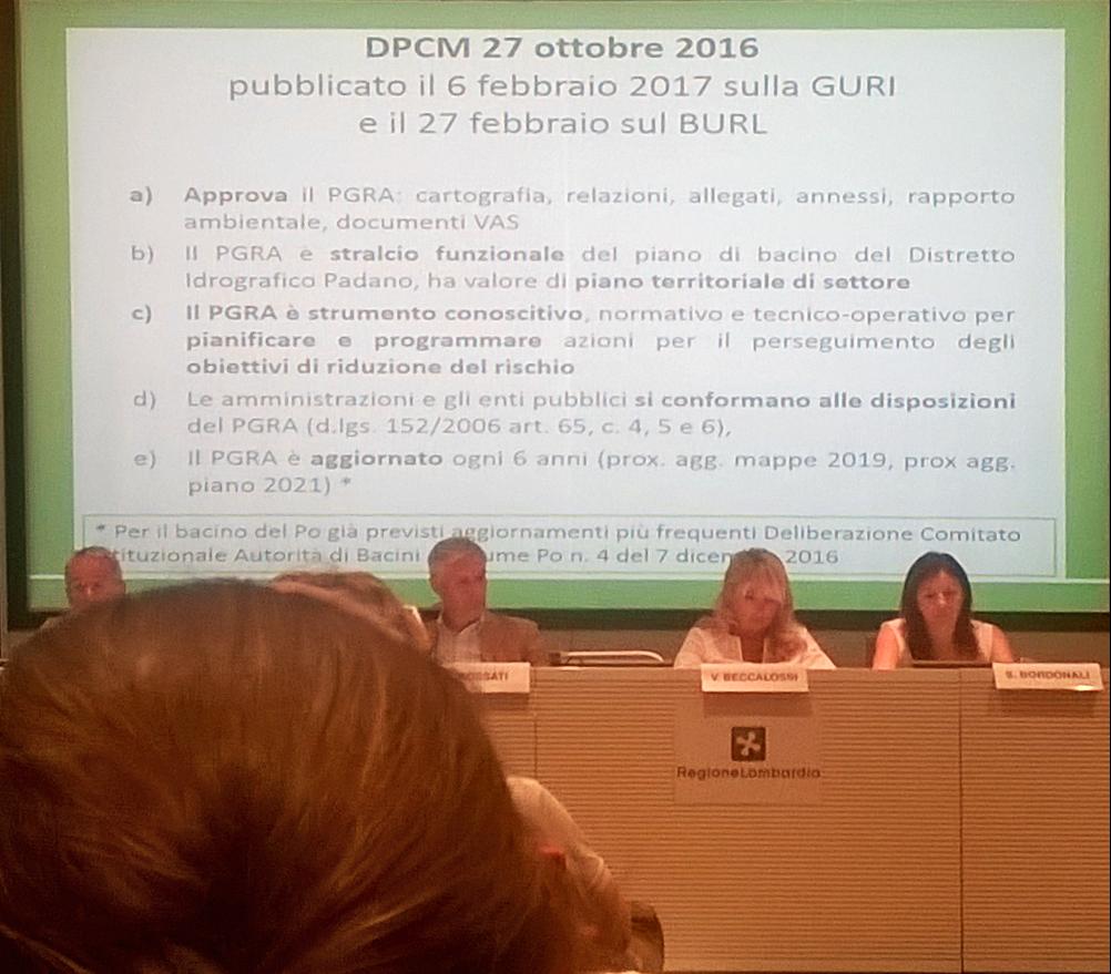 Oggi 19 Luglio 2107, si è tenuto presso la sede della Regione Lombardia un incontro informativo sulle disposizioni regionali sull’attuazione del nuovo PGRA.